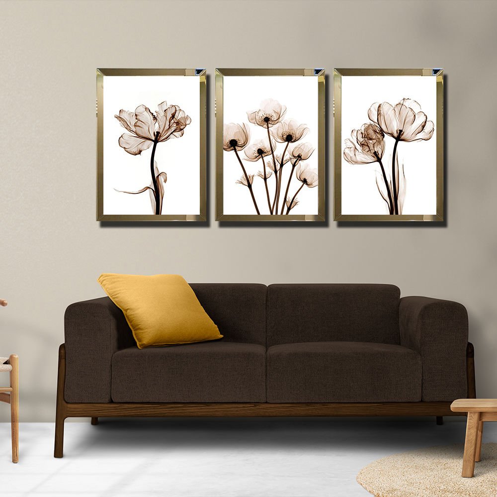 Ayna Çerçeveli ,3 lü Set Çiçek Tablo 40 x 60cm