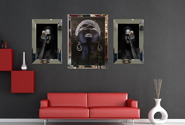Ayna Çerçeveli, Afrikalı Kadın, 3lü set 50 x 70cm