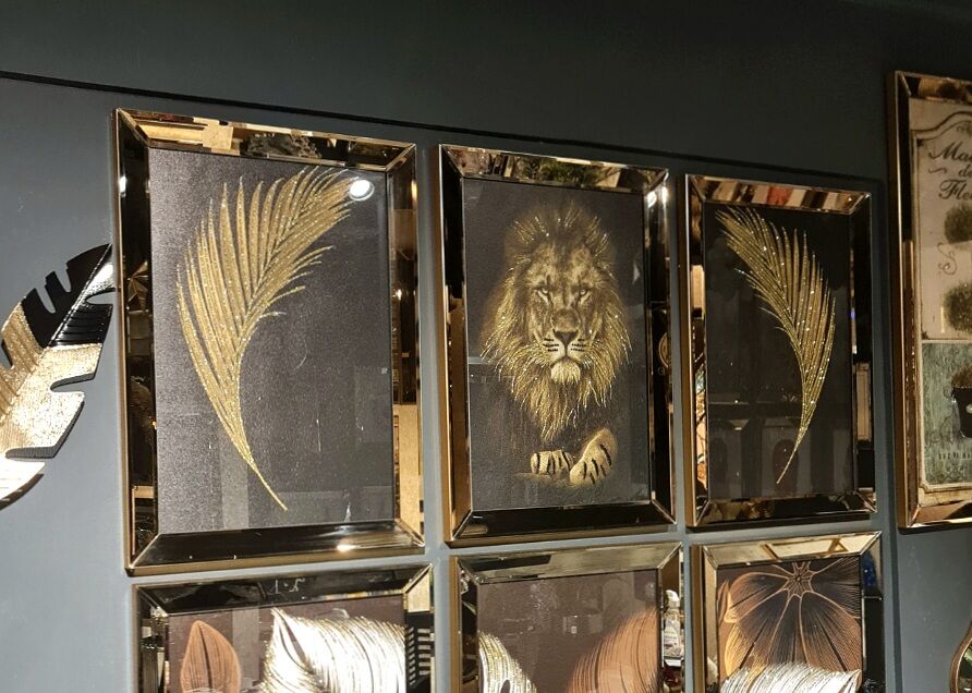Ayna Çerçeveli Aslan Tablo, 3 lü Set