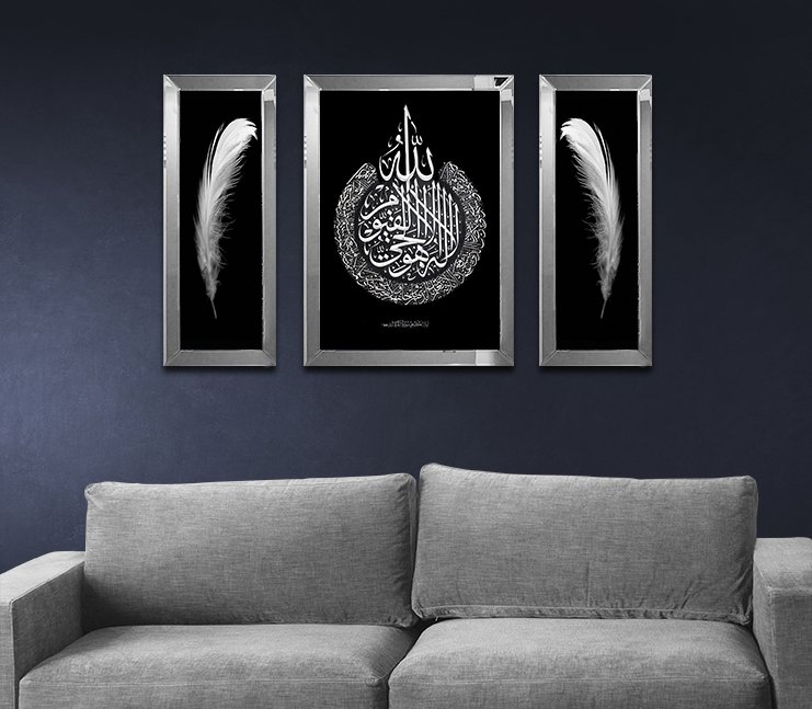 Ayna Çerçeveli, Ayetel Kursi Tablo, 3lü set 50 x 70cm