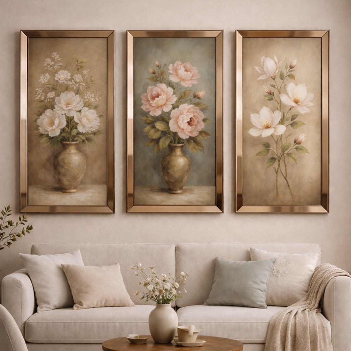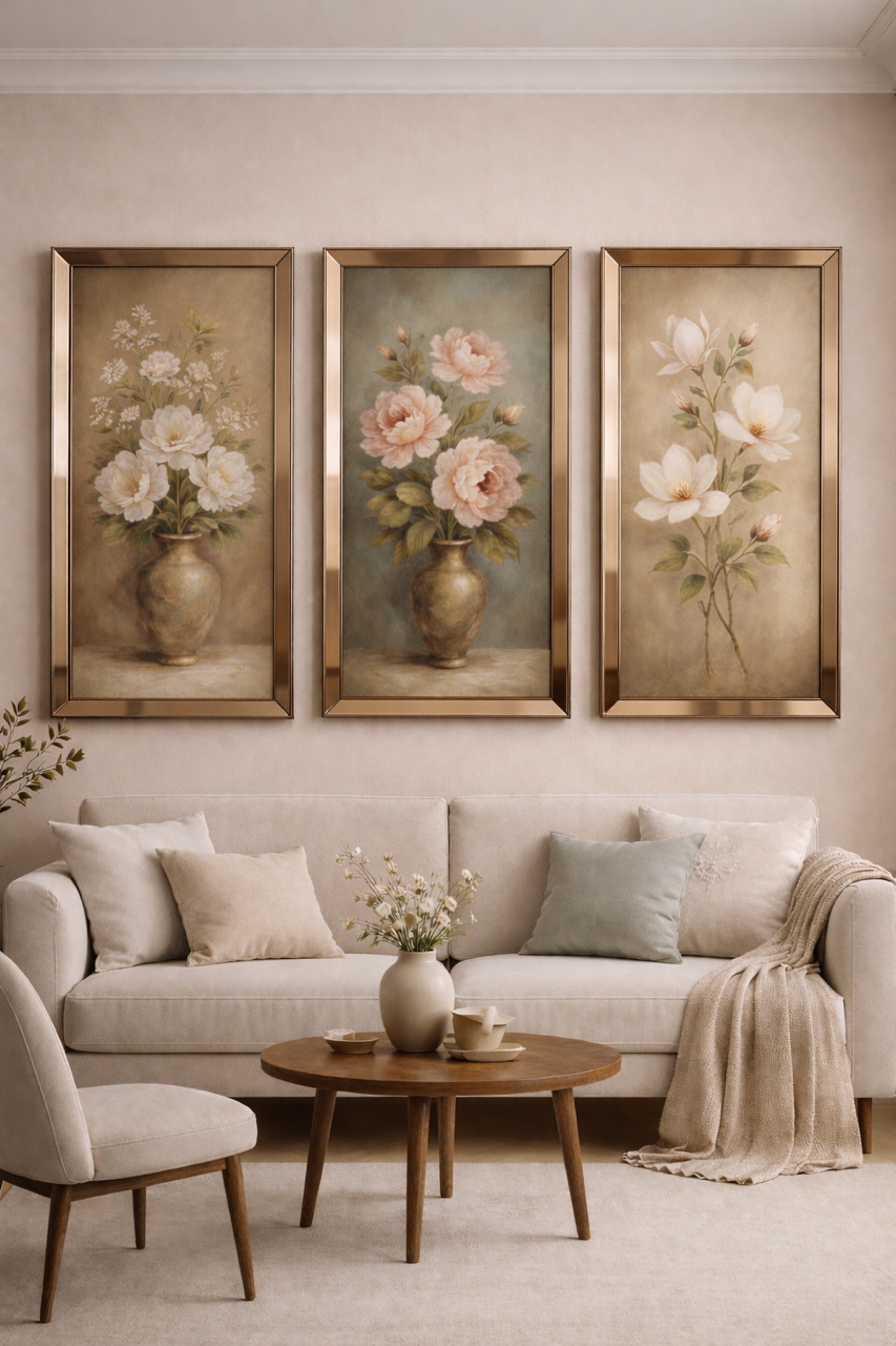 Ayna Çerçeveli, Flowers Tablo, 3lü set