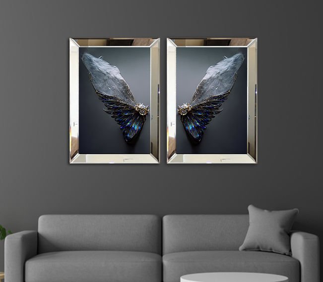 Ayna Çerçeveli, Melek Kanadı Tablo, 2 li Set 40 x 60cm