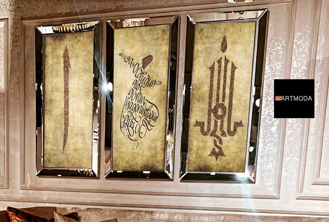 Ayna Çerçeveli, Semazen Gold Eskitme Tablo, 3lü set 40 x 80cm