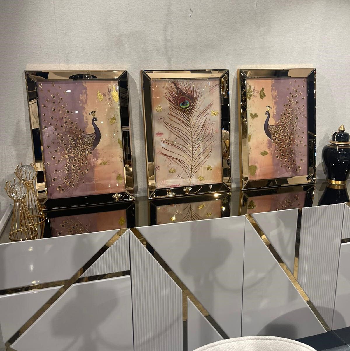 Ayna Çerçeveli Tavuz Kuşu Tablo, 3 lü Set