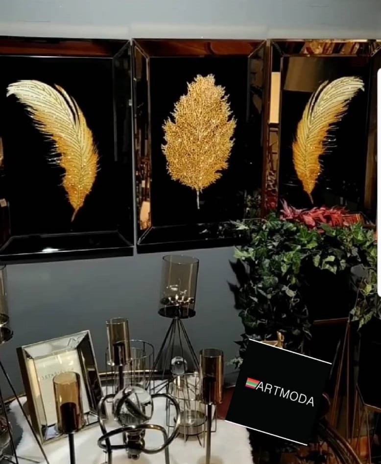 Ayna Çerçeveli, Tüy Ve Yaprak 3 lü Set 40 x 60cm