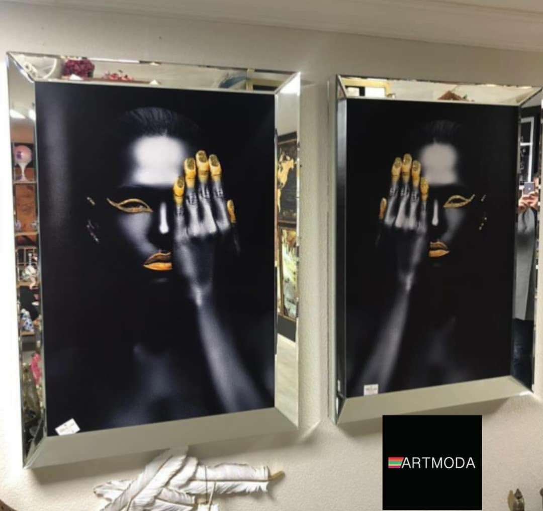 Ayna Çerçeveli, Zenci Kadın Tablo, 2 li Set 40 x 60cm