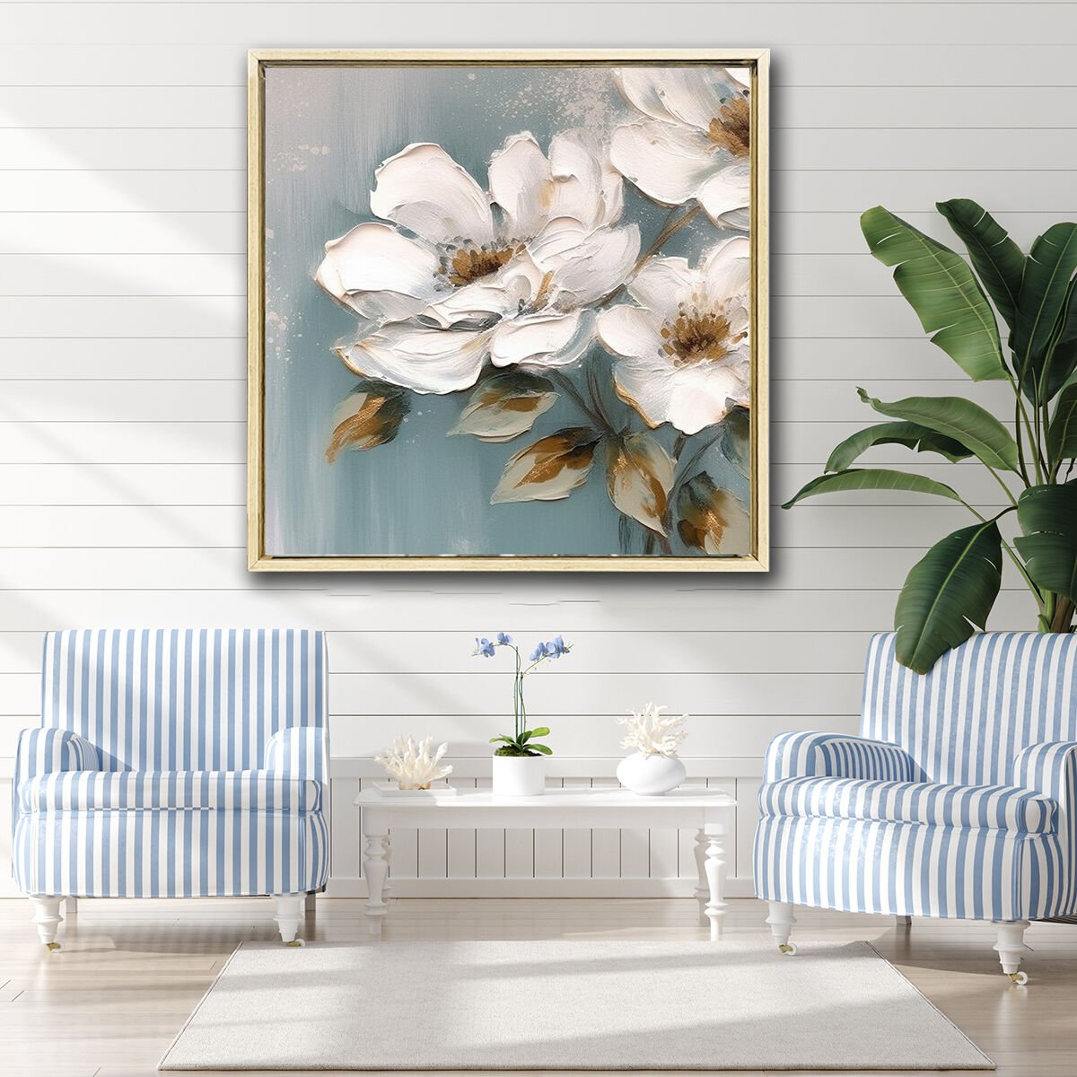 Flowers, Yağlı Boya Dokulu Tablo 125 x 125cm - Meşe Natural Çerçeve
