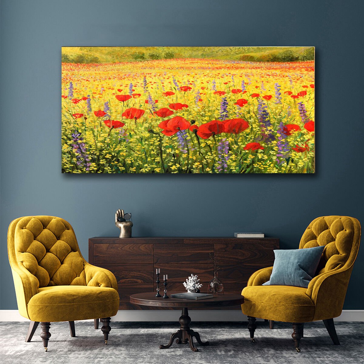 Gelincik Tarlası , Yağlı Boya Dokulu Tablo 65 x 125cm - Çerçevesiz