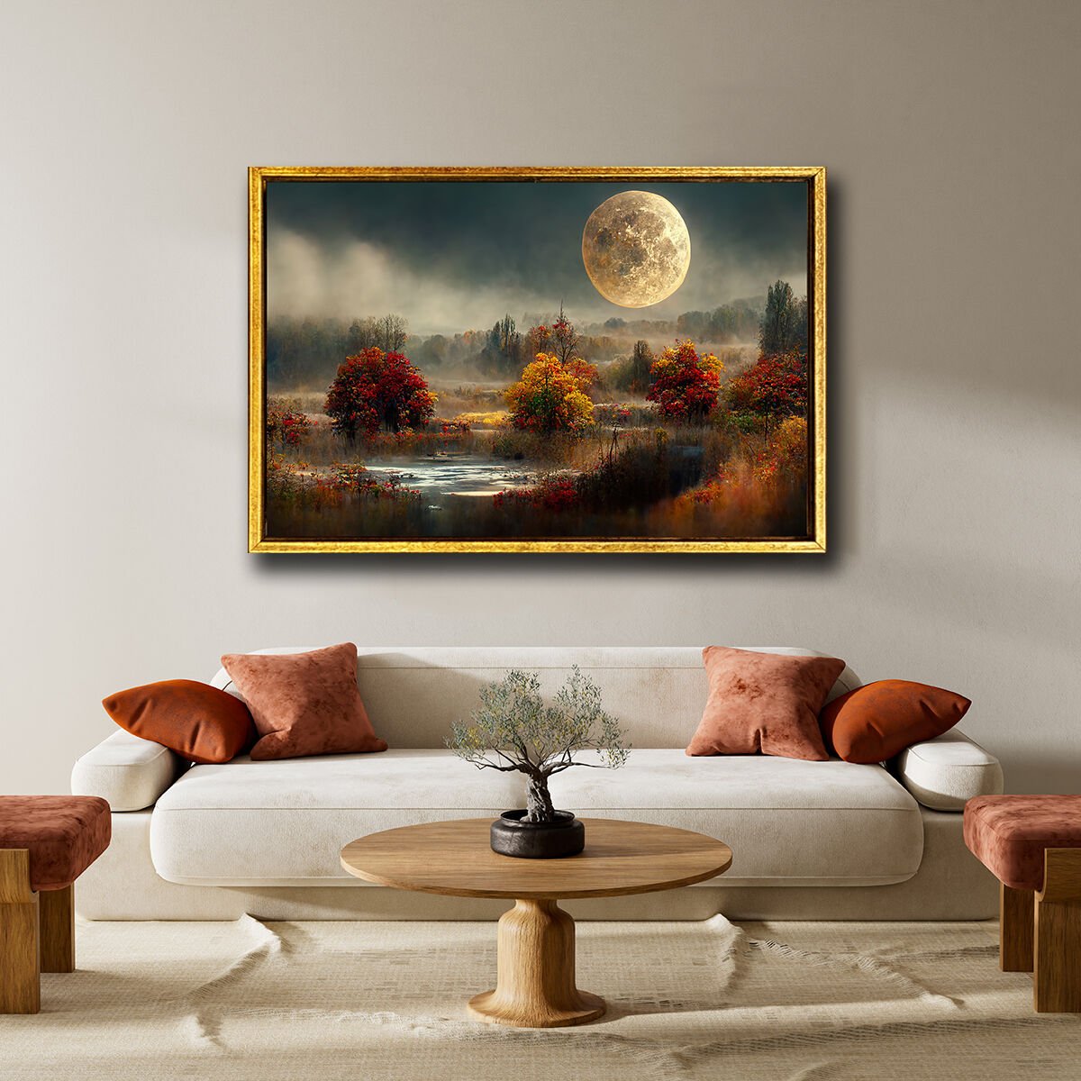Dolunay, Yağlı Boya Dokulu Tablo 65 x 95 cm - Gold Çerçeve