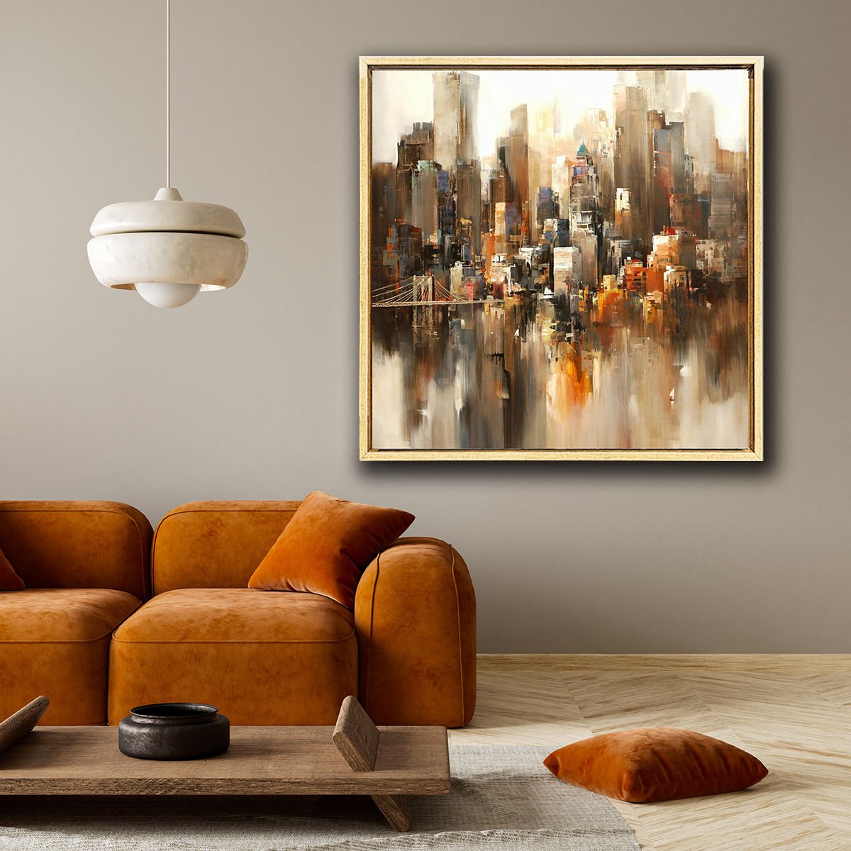 Gökdelenler, Yağlı Boya Dokulu Tablo 105 X 105cm - Meşe Natural Çerçeve