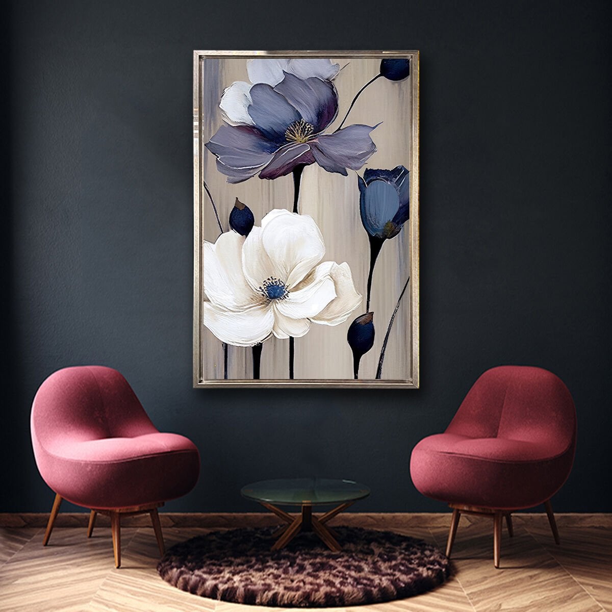 Gölgede Açan Çiçekler, Yağlı Boya Dokulu Tablo