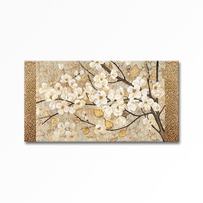 Kabartmalı Beyaz Çiçek Dalı Tablo 100 x 50cm