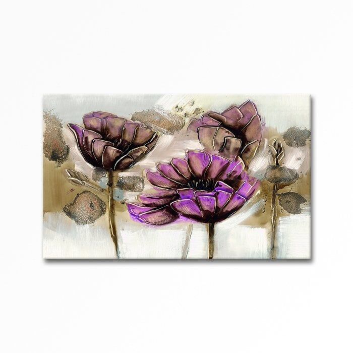 Kabartmalı Mor Çiçek Tablosu 60 x 90cm