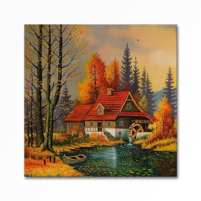 Kabartmalı Orman Evleri Tablo 70 x 70cm