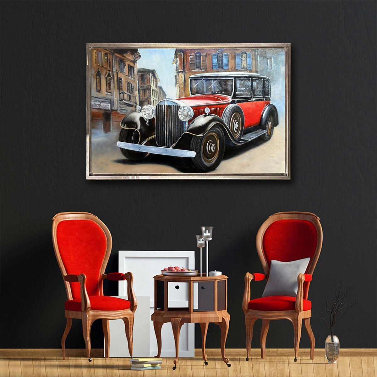 Kırmızı Araba , Yağlı Boya Dokulu Tablo