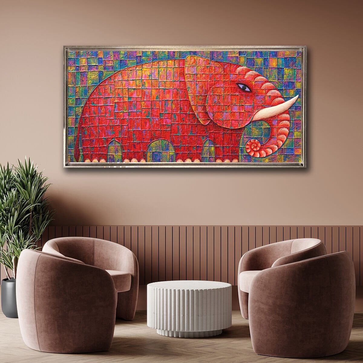 Kırmızı Fil, Yağlı Boya Dokulu Tablo