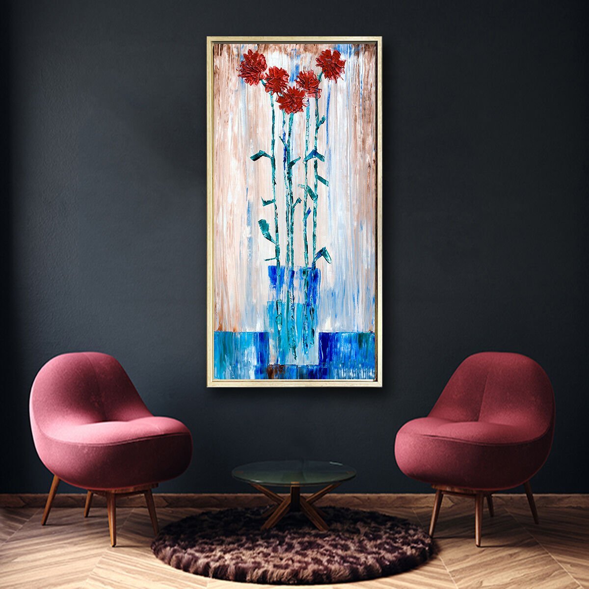 Kırmızı Karanfiller Yağlı Boya Dokulu Tablo
