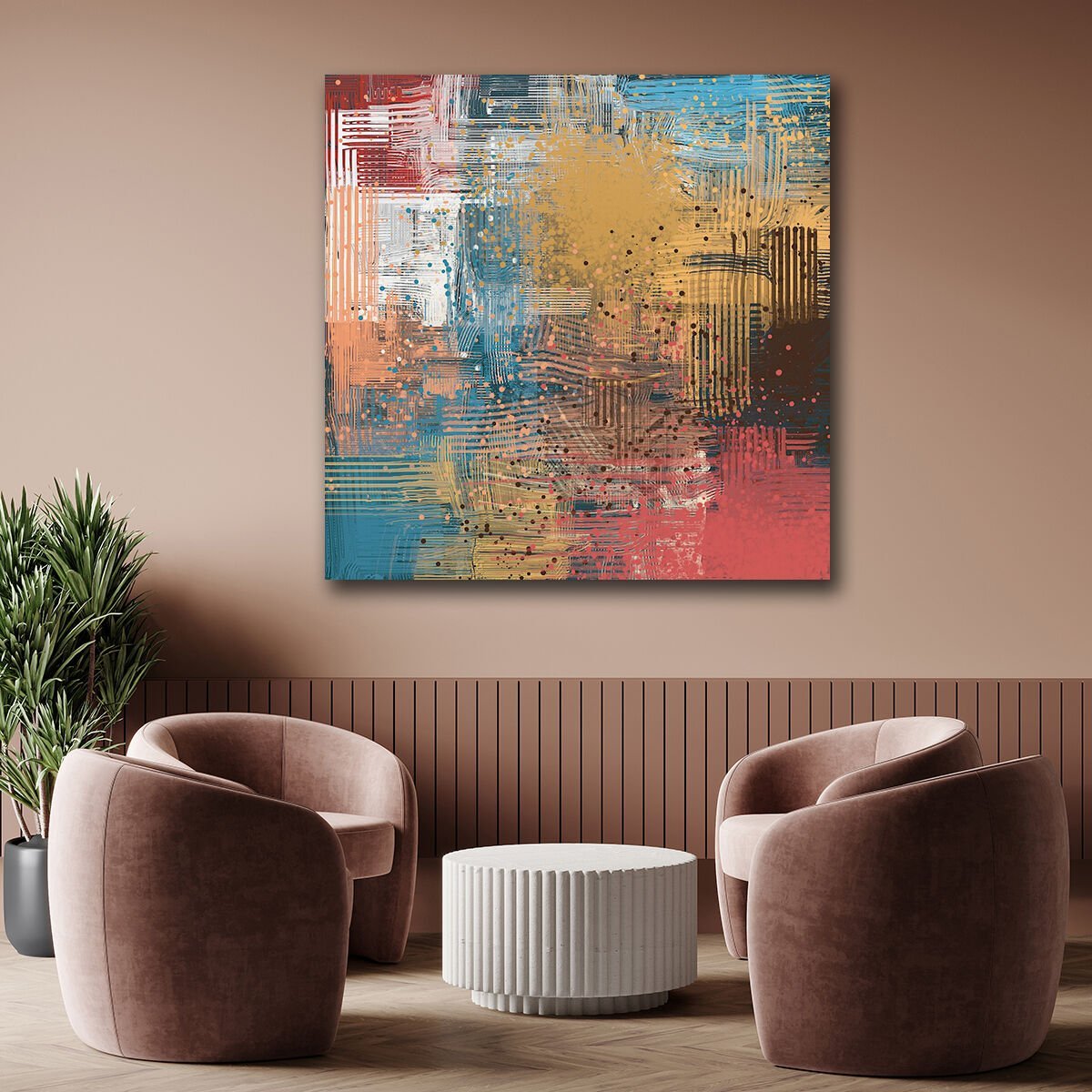 Kırmızı, Sarı Ve Mavi Karışım, Yağlı Boya Dokulu Tablo