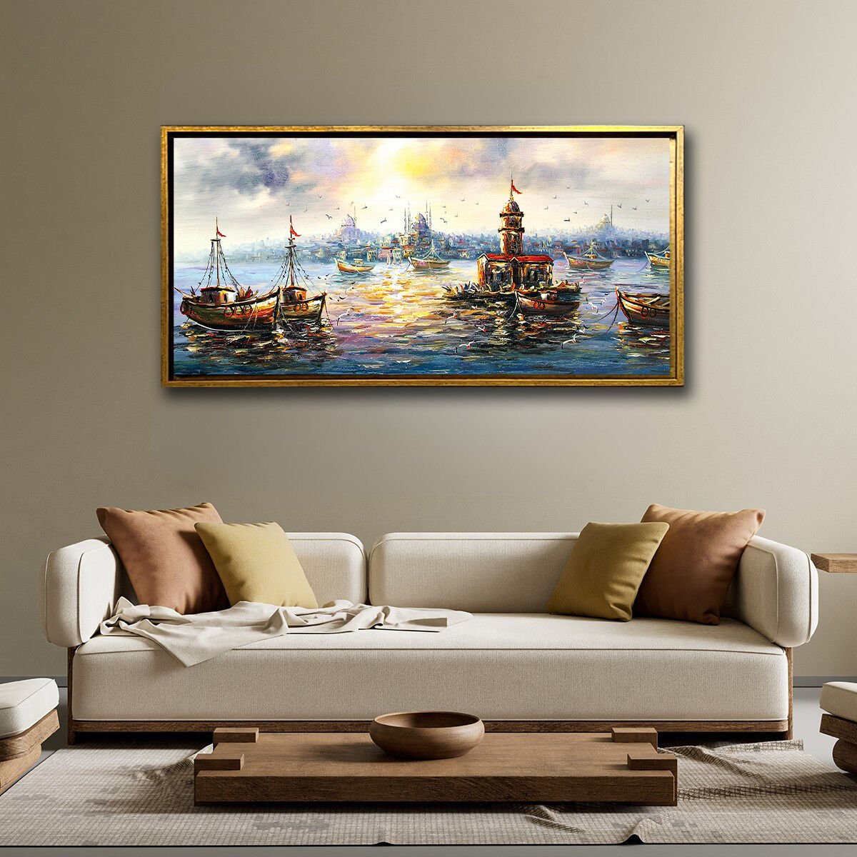 Kız Kulesi Ve Gemiler, Yağlı Boya Dokulu Tablo