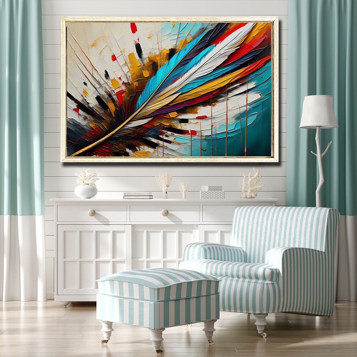 Kuş Tüyü, Yağlı Boya Dokulu Tablo