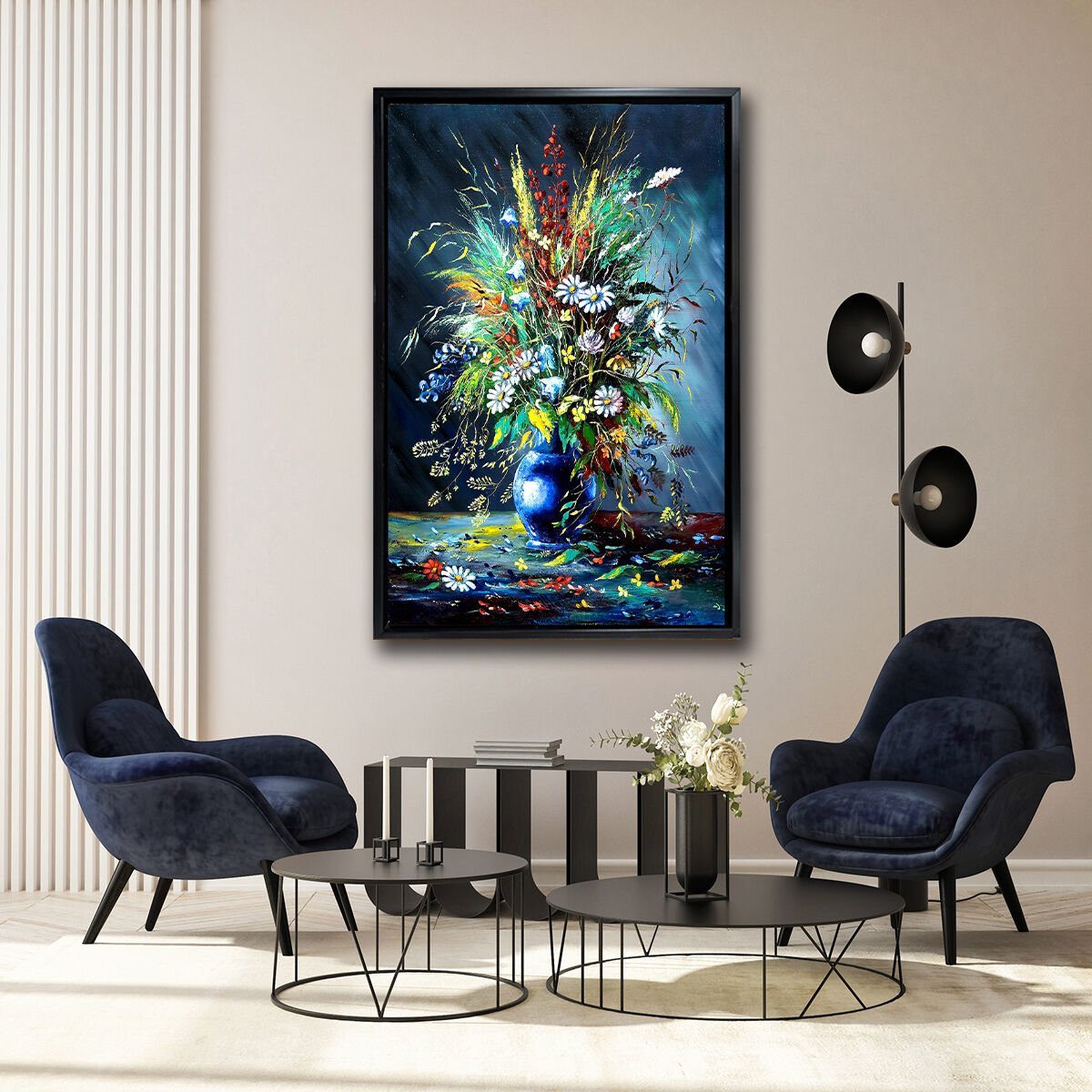 Lacivert Vazo, Yağlı Boya Dokulu Tablo