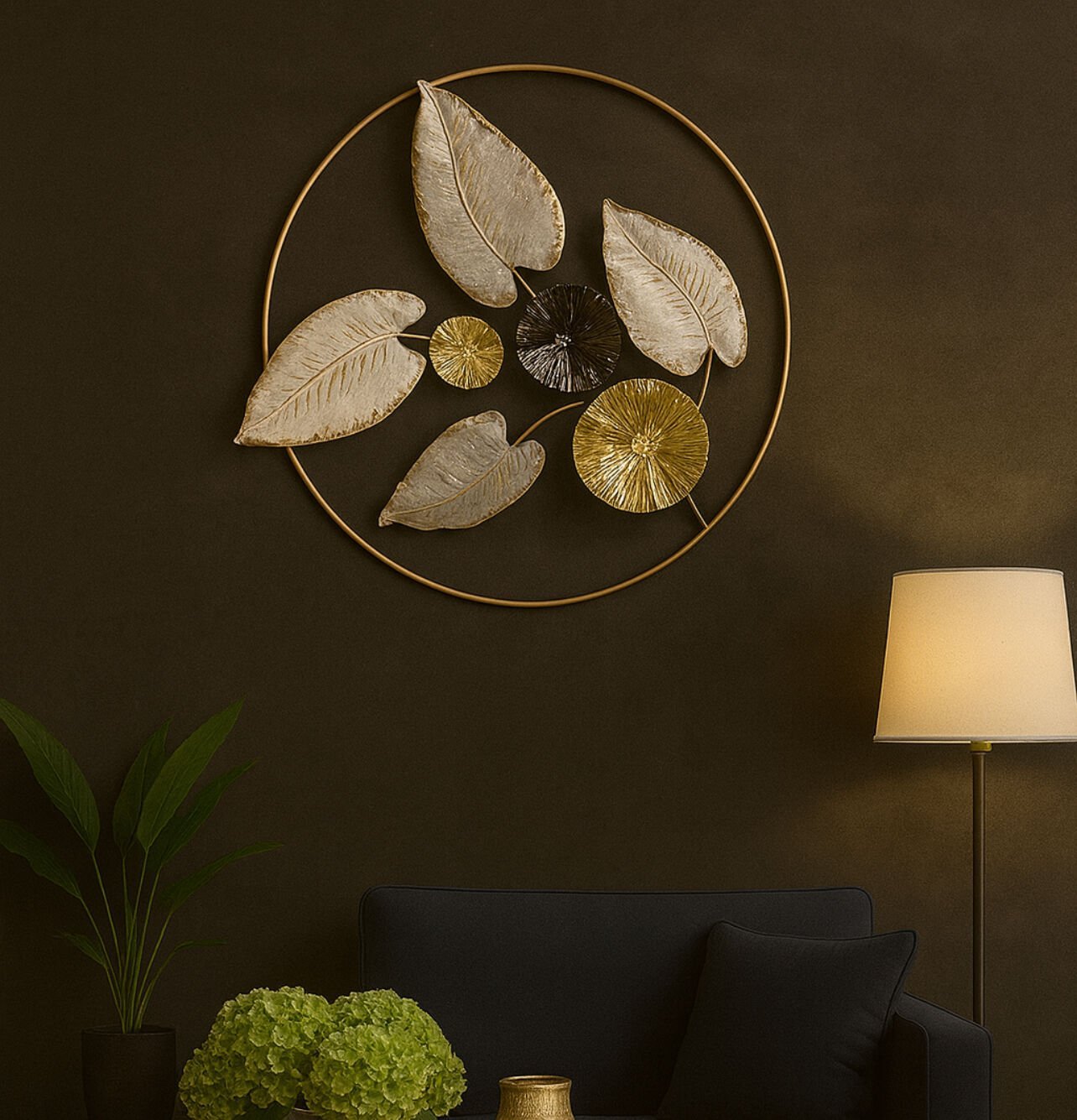 Dekoratif metal duvar panosu tek parçadır.