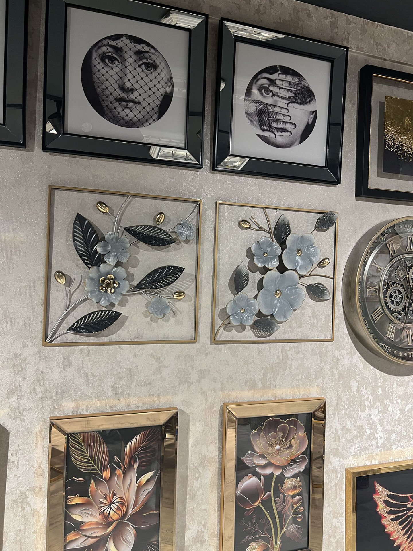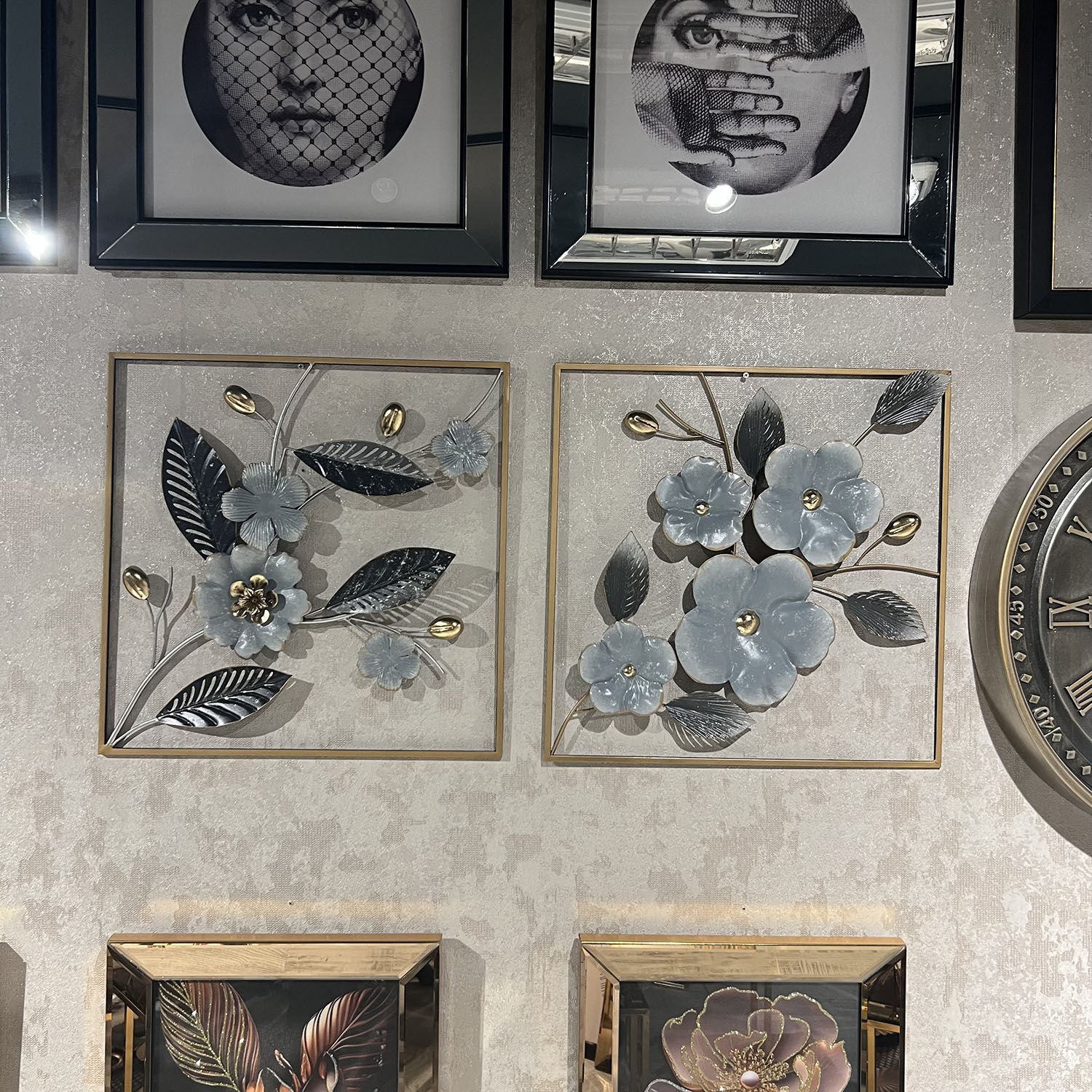 Dekoratif metal duvar panomuz 2li kombin şeklinderdir.