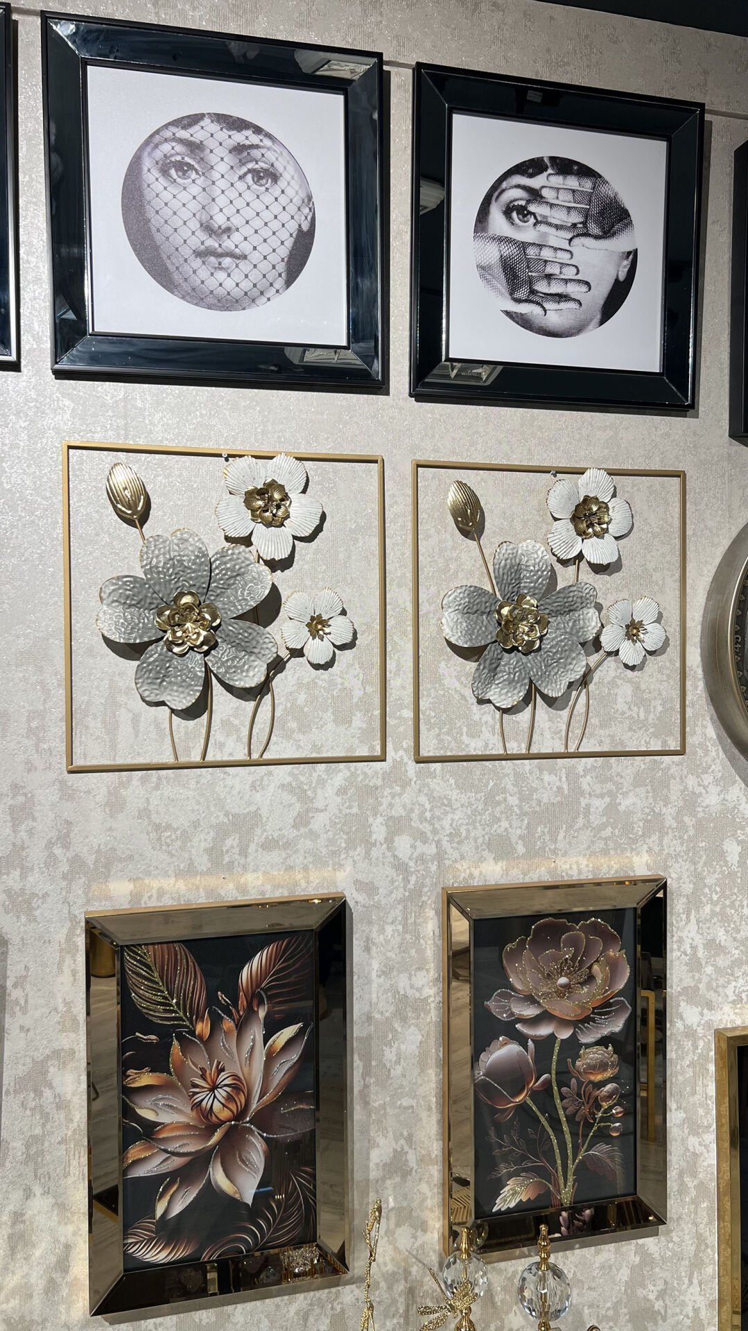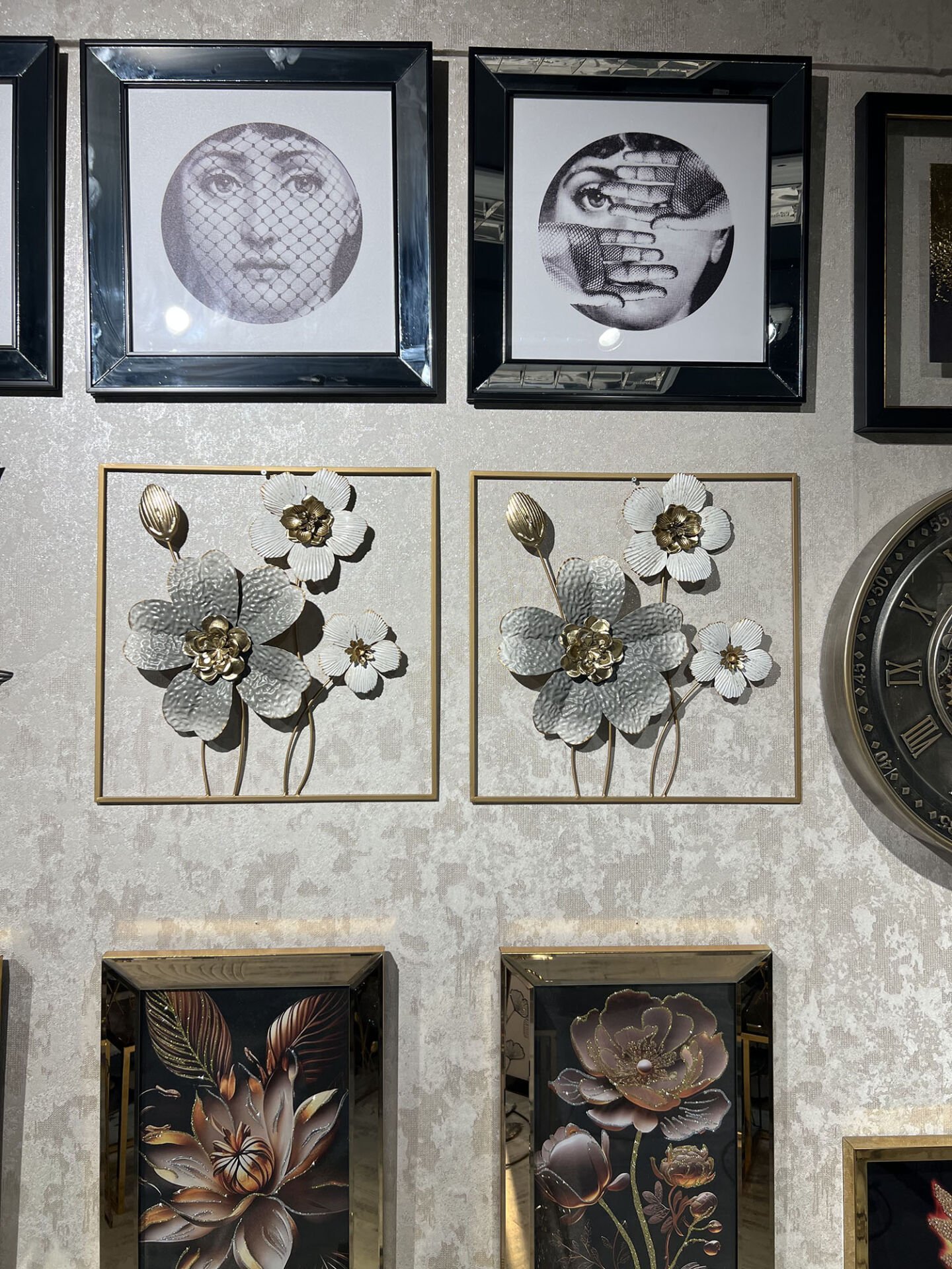 Dekoratif metal duvar panomuz 2li kombin şeklinderdir.