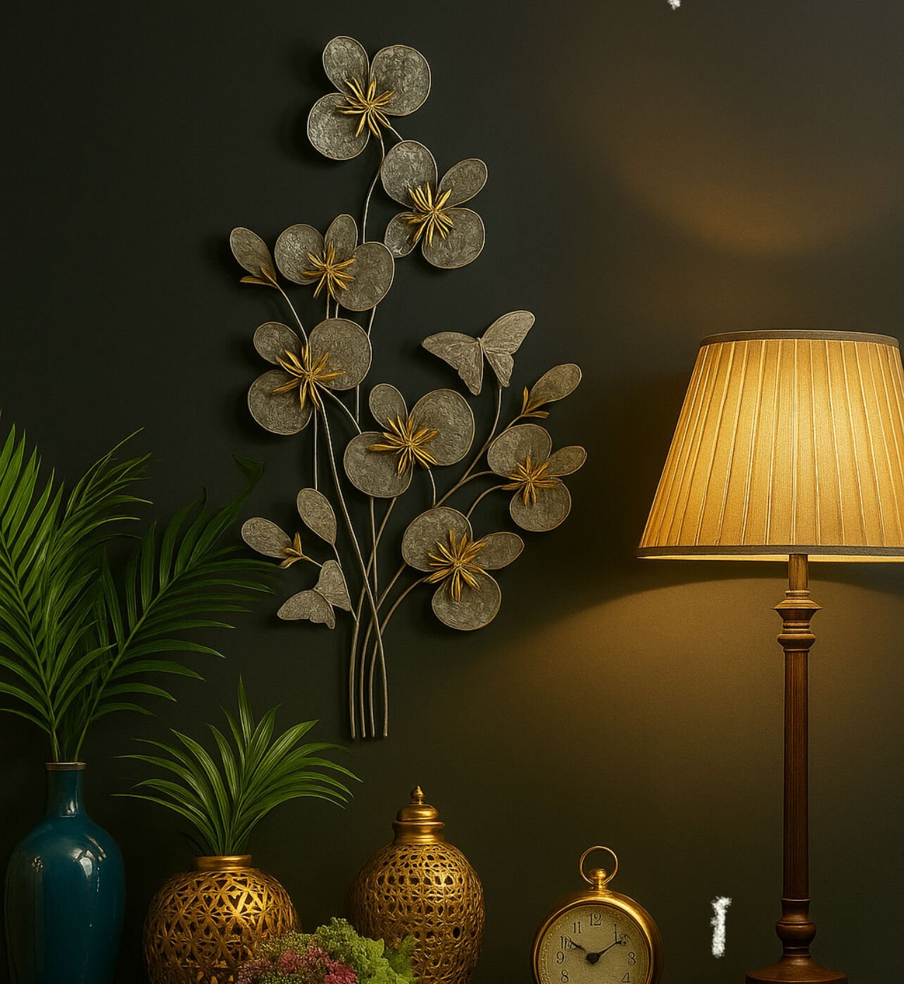 Dekoratif metal duvar panosu tek parçadır.