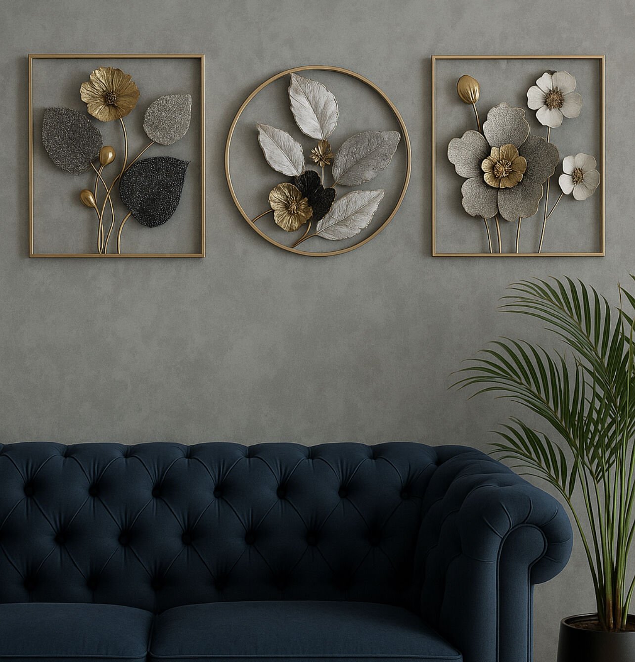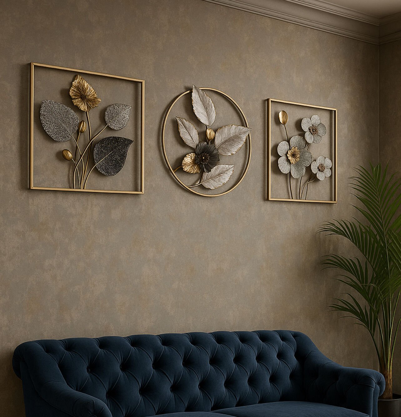 Dekoratif metal duvar panomuz 3 lü kombin şeklinderdir.