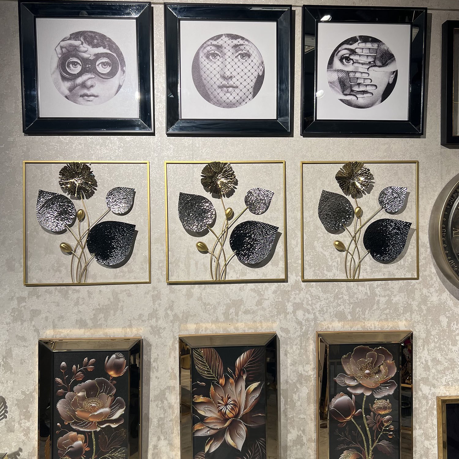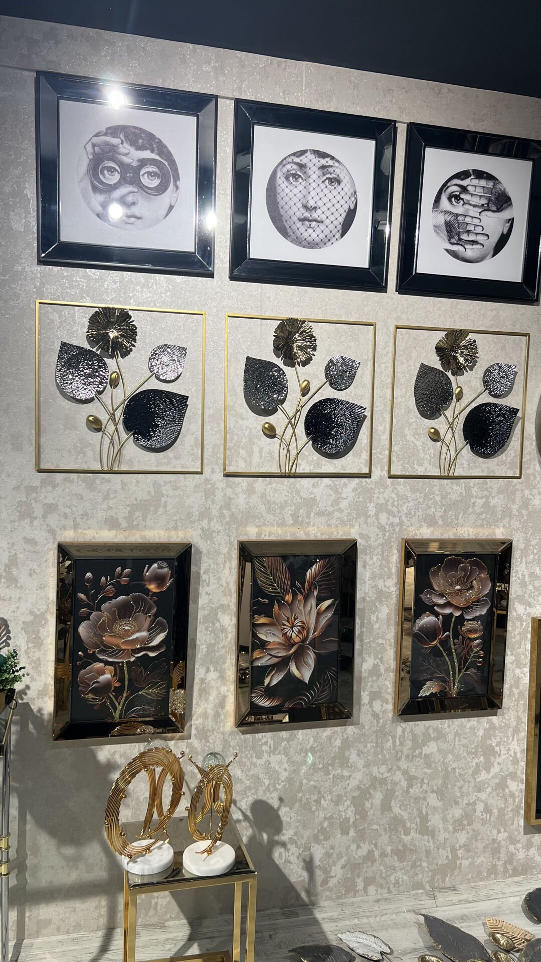 Dekoratif metal duvar panomuz 3 lü kombin şeklinderdir.