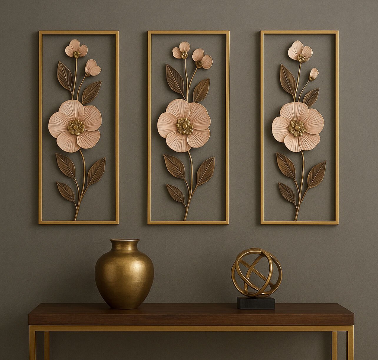 Dekoratif metal duvar panomuz 3 lü kombin şeklinderdir.