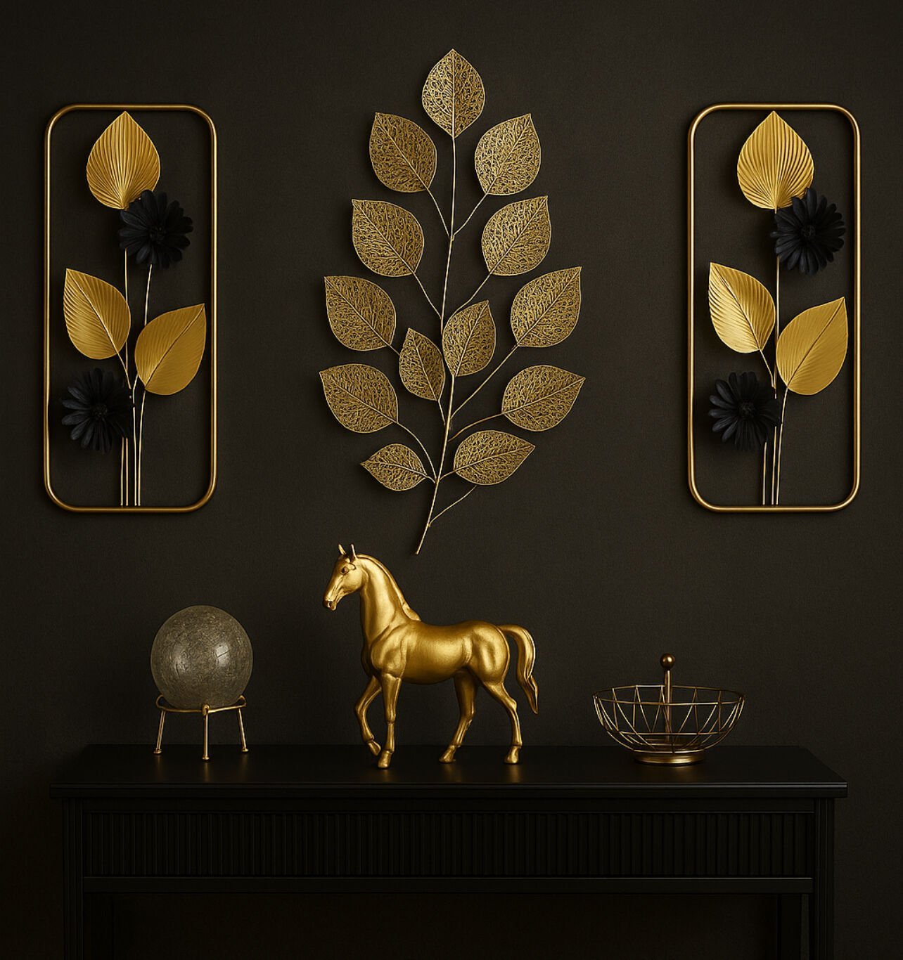 Dekoratif metal duvar panomuz 3 lü kombin şeklinderdir.
