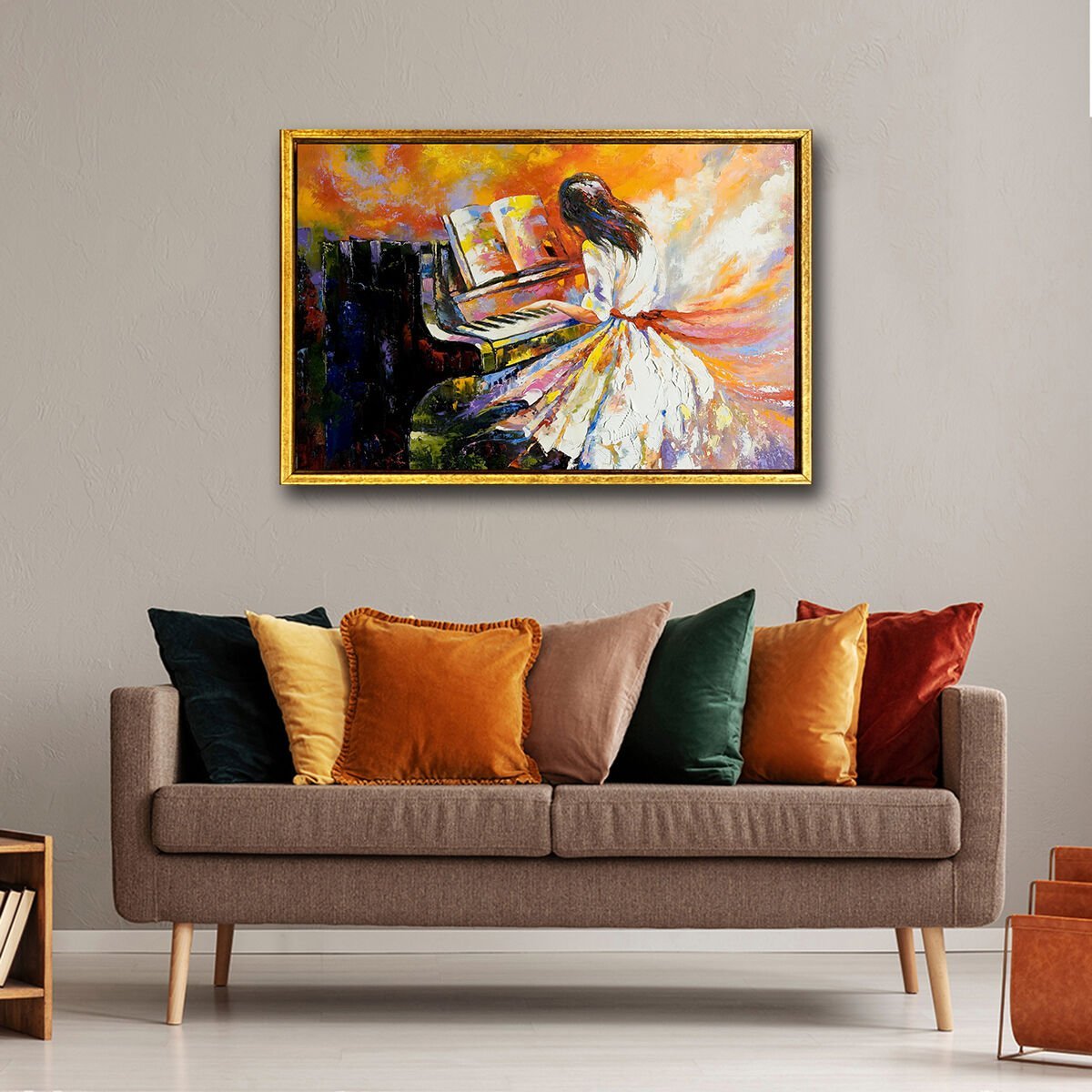 Piyano Çalan Kız, Yağlı Boya Dokulu Tablo