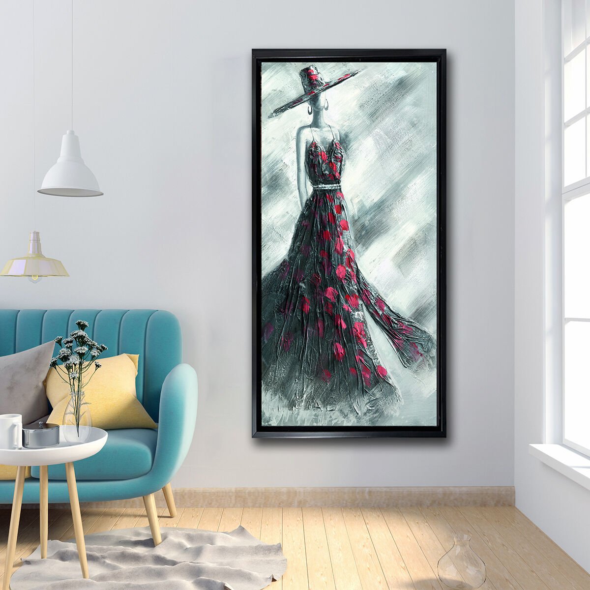 Puantiyeli Elbiseli Kadın, Yağlı Boya Dokulu Tablo