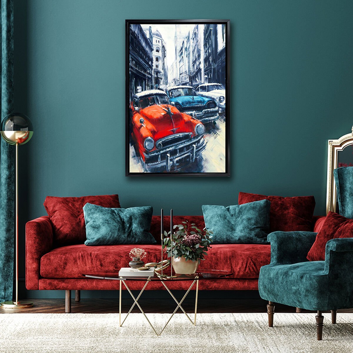 Renkli Arabalar, Yağlı Boya Dokulu Tablo