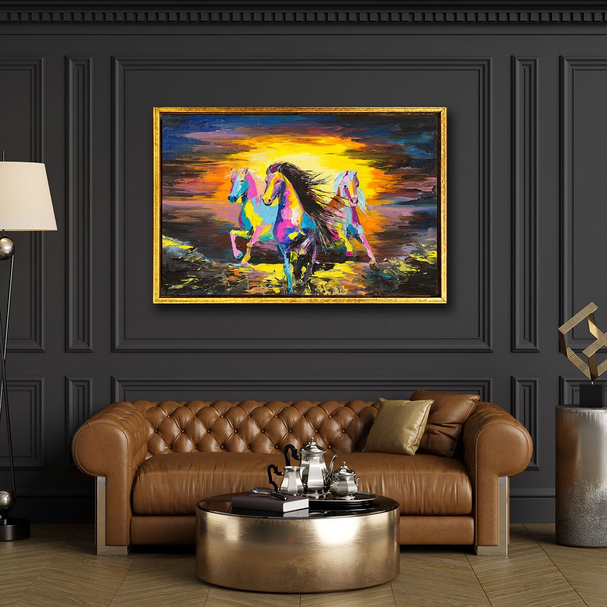 Renkli Atlar , Yağlı Boya Dokulu Tablo
