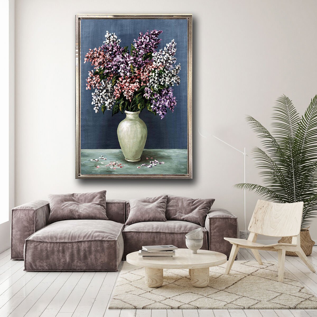 Saksıda Çiçekler, Yağlı Boya Dokulu Tablo