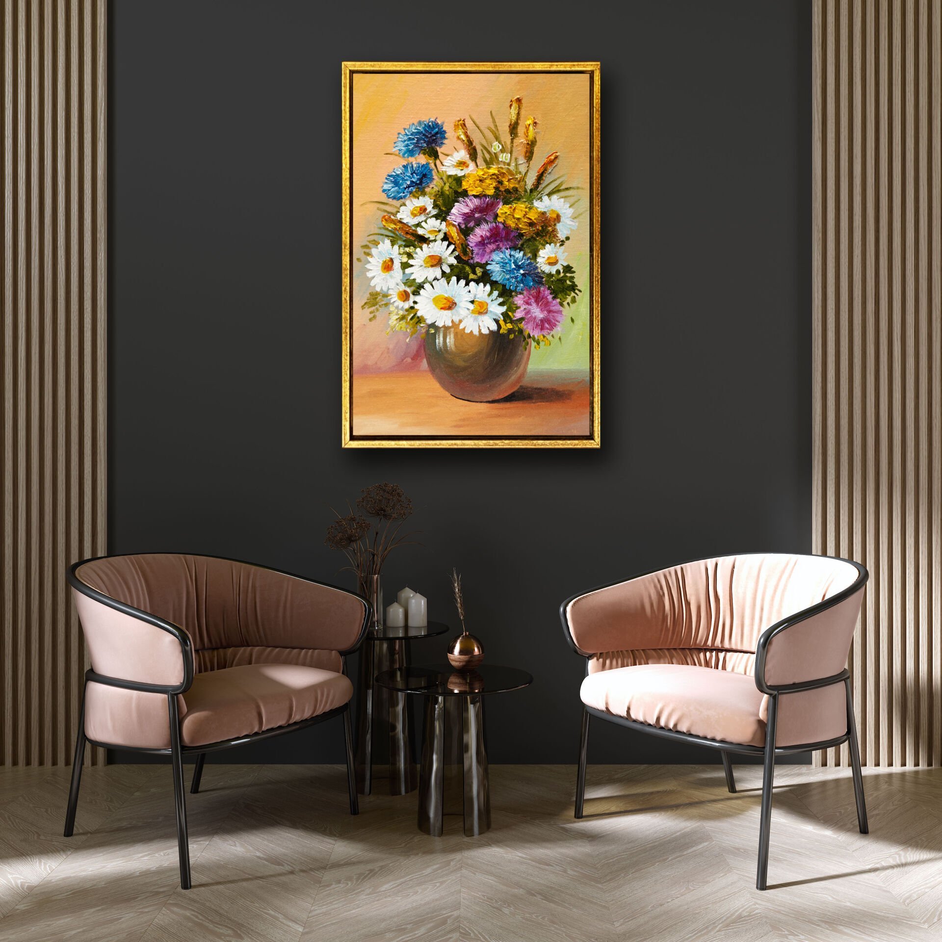 Saksıda Papatyalar , Yağlı Boya Dokulu Tablo