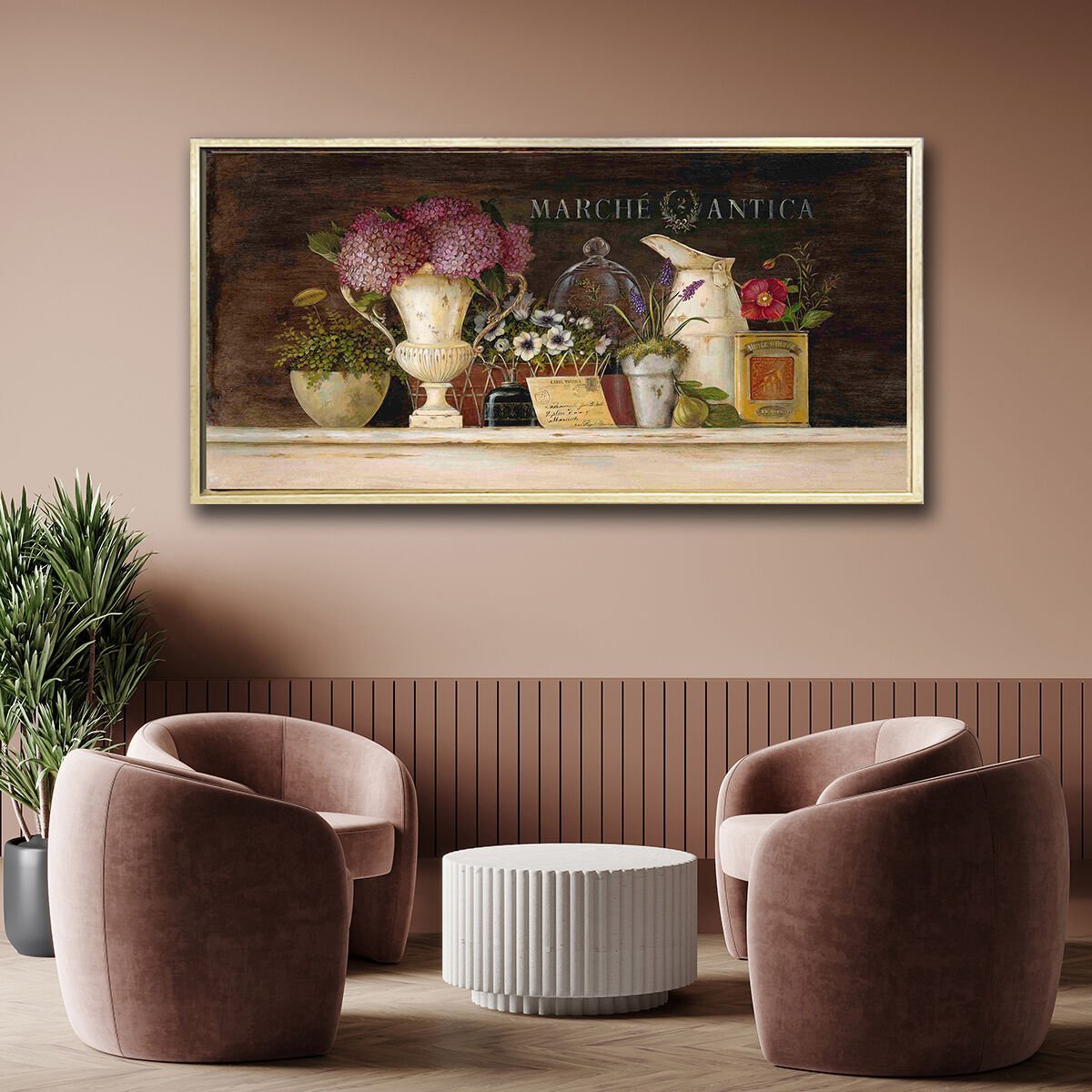 Saksılarda Çiçeklerde, Yağlı Boya Dokulu Tablo