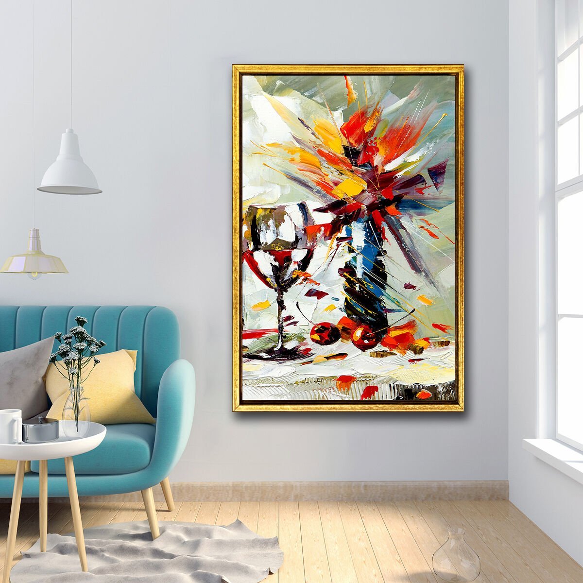 Şarap Kadehi, Yağlı Boya Dokulu Tablo