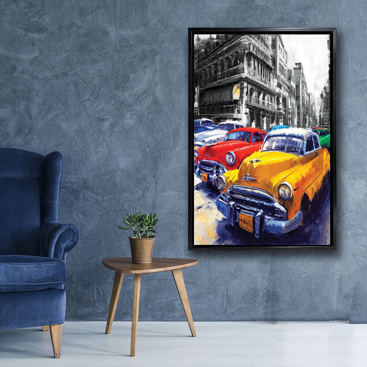 Sarı Ve Kırmızı Arabalar, Yağlı Boya Dokulu Tablo