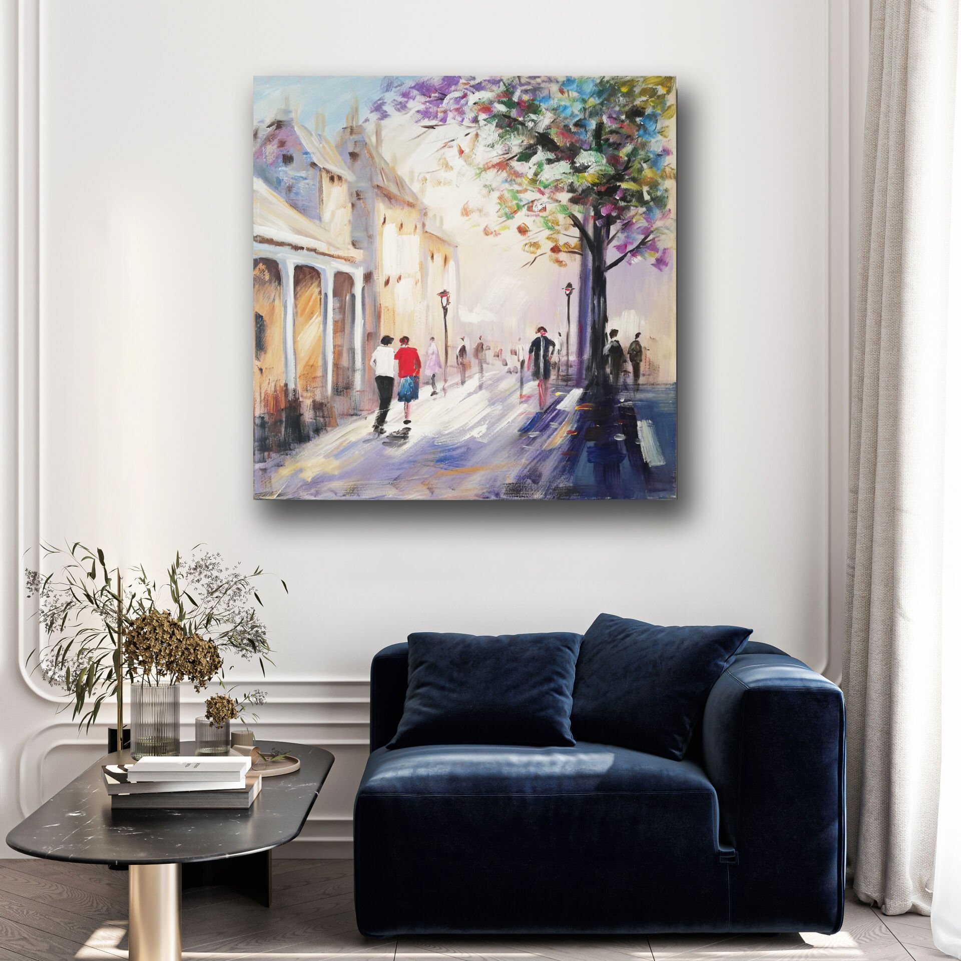 Şehirde Sabah Işıkları, Yağlı Boya Dokulu Tablo
