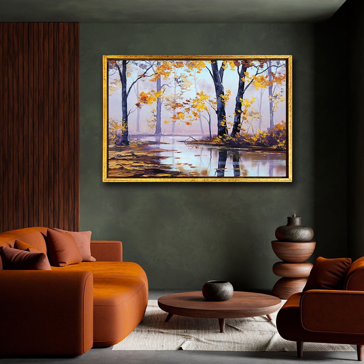 Sonbaharda Ağaçlar, Yağlı Boya Dokulu Tablo