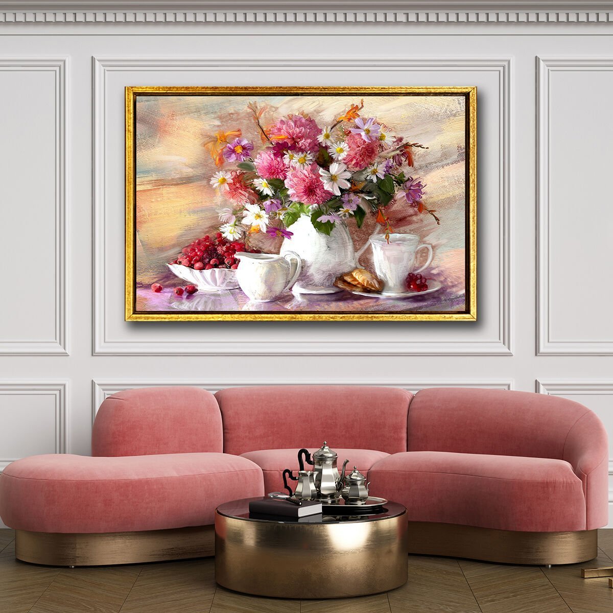 Vazoda Çiçekler , Yağlı Boya Dokulu Tablo