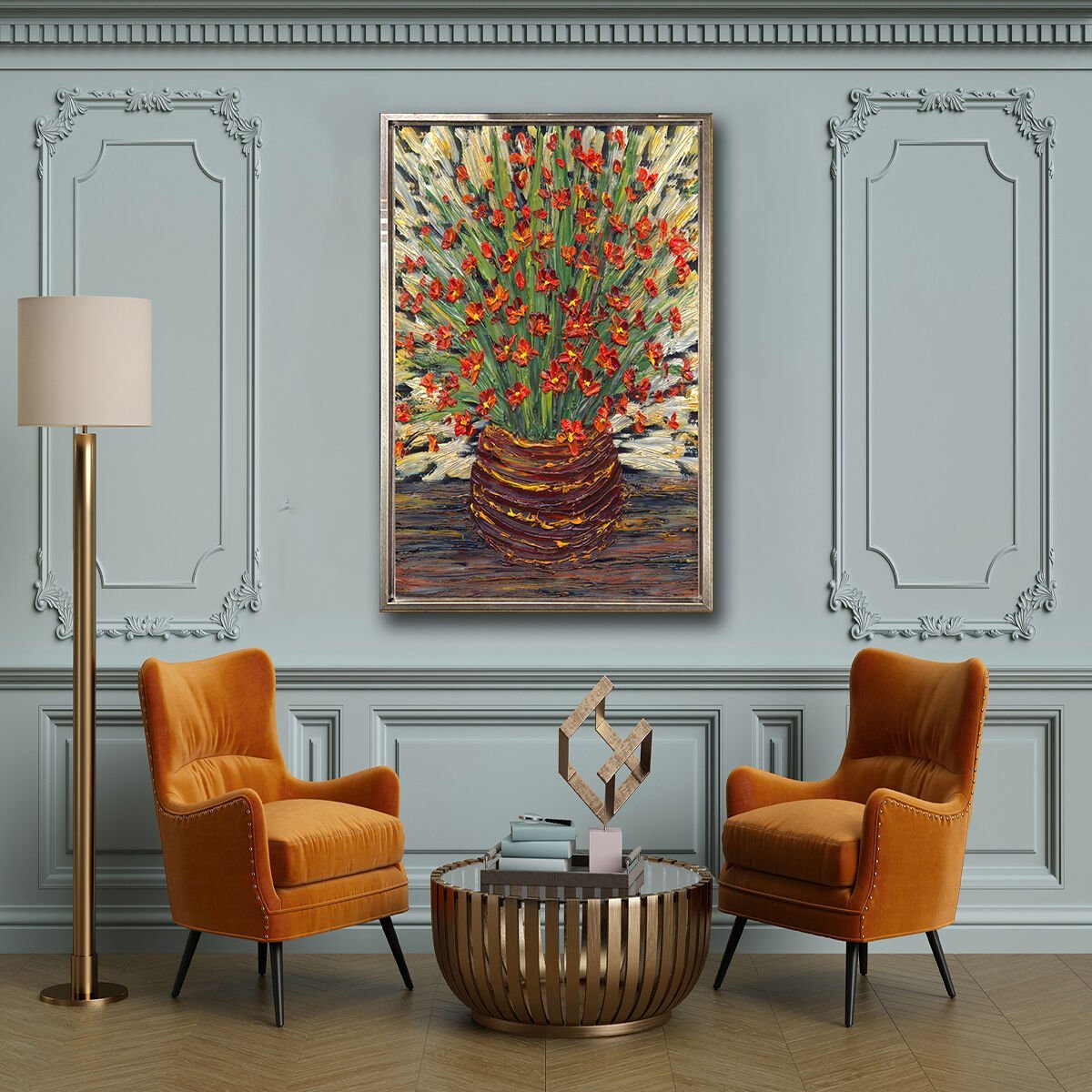 Vazoda Çiçekler, Yağlı Boya Dokulu Tablo