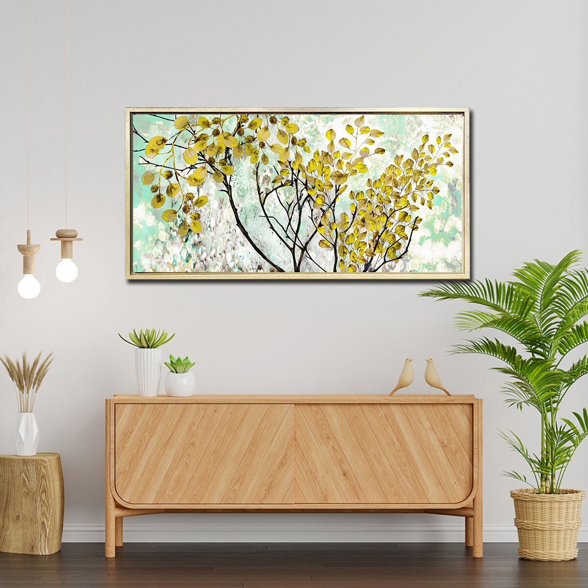 Sarı Esinti, Yağlı Boya Dokulu Tablo 75 x 145cm - Meşe Natural Çerçeve