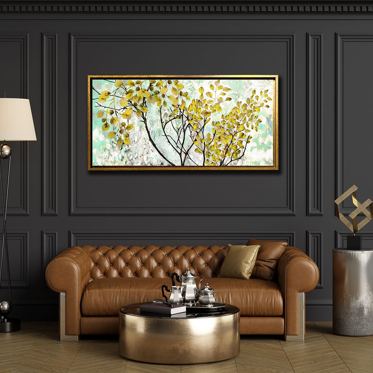 Sarı Esinti, Yağlı Boya Dokulu Tablo 85 x 165cm - Gold Çerçeve