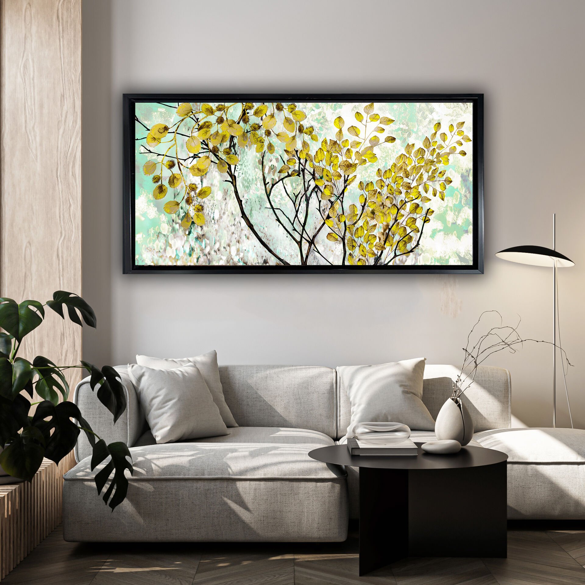 Sarı Esinti, Yağlı Boya Dokulu Tablo 85 x 165cm - Siyah Çerçeve